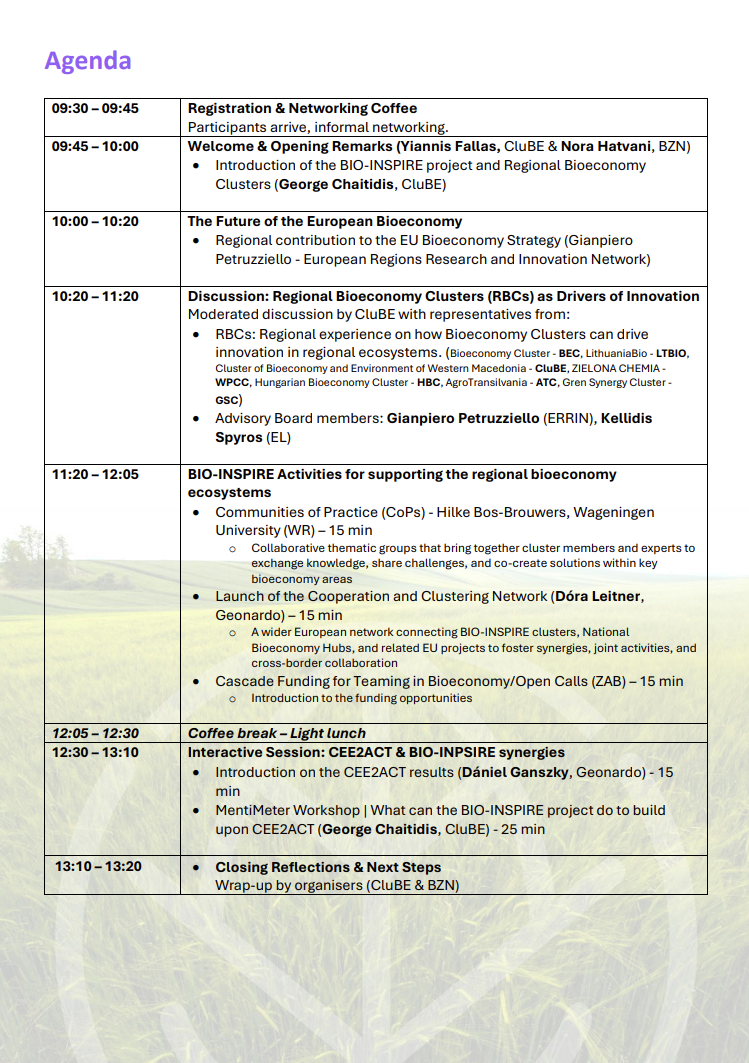 Meghívó – Regionális Bioeconomy Klaszter (RBCs) Találkozó & BIO-INSPIRE Esemény